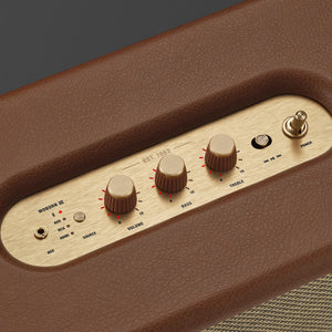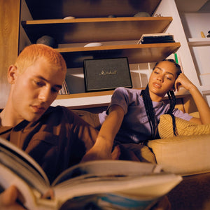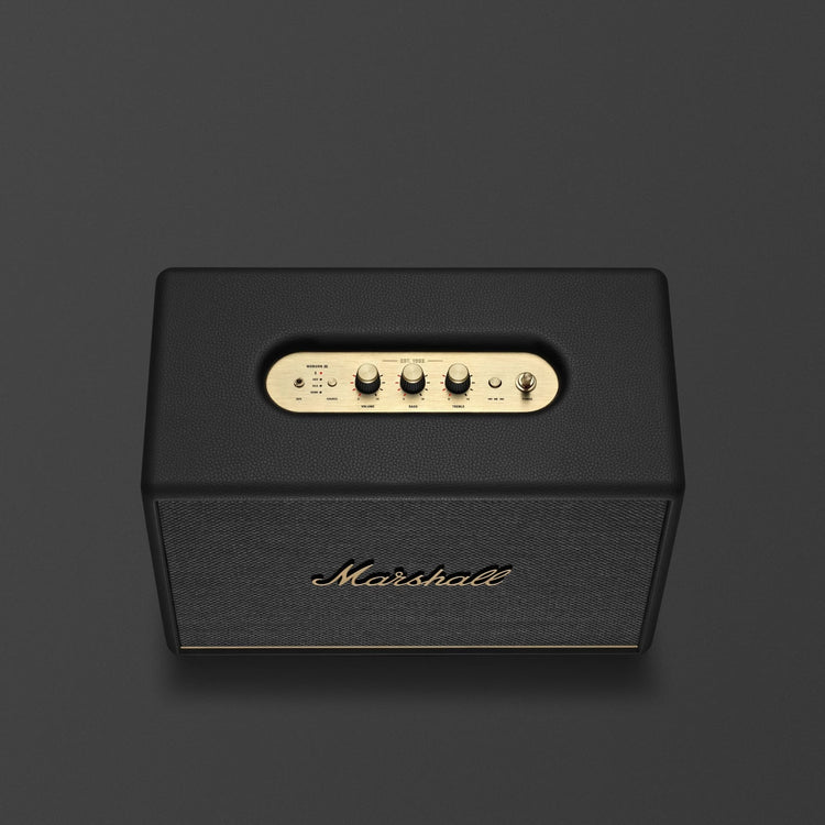 Marshall has taken its signature rock ’n’ roll home speaker line-up and given it a stripped-back look that makes a loud statement. This iconic design knocks all other speakers off the shelf. Signature details such as the Marshall script and brass control knobs adorn each speaker, echoing the legacy of rock ’n’ roll.