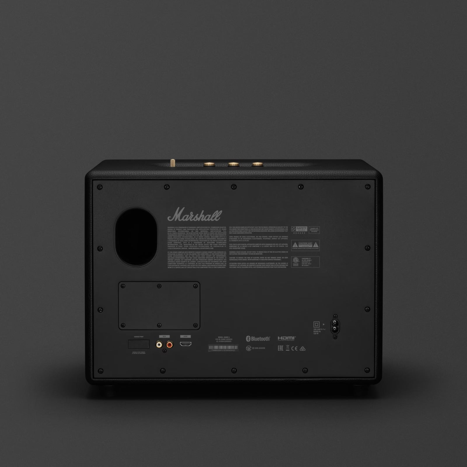With so many ways to connect to Woburn III, getting the right sound for listening to music or watching TV has never been so effortless. Connect to your speaker directly from your device using Bluetooth, RCA or 3.5 mm input. Woburn III also has an HDMI input, which allows you to connect Woburn III to your TV for a uniquely Marshall viewing experience.