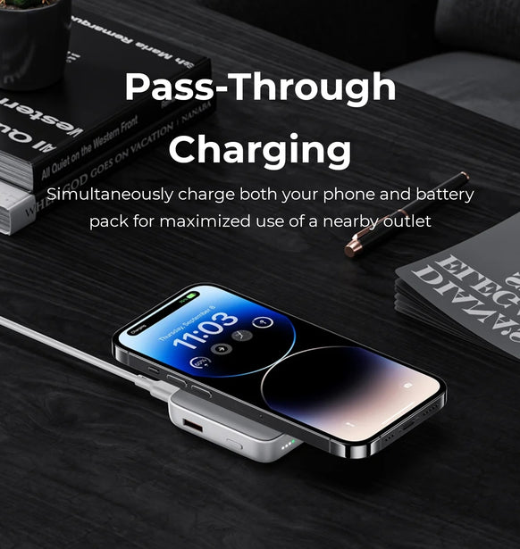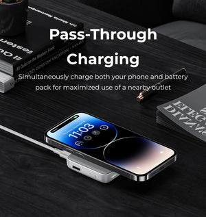 Stay powered on the go with the MagClap JuicePod Power Bank 10000mAh. Its sleek design easily attaches to your phone and charges quickly with the included USB-C cable. The LED light indicator lets you monitor the remaining battery level, keeping you connected and worry-free. With a 10000 mAh capacity, this power bank is an essential for everyday use.