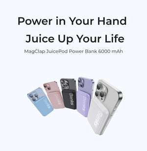 The MagClap JuicePod Power Bank is your ultimate power solution in a compact package. With magnetic wireless charging and 6000mAh battery capacity, it provides efficient and hassle-free power replenishment. Its skin-friendly juice touch ensures a comfortable grip, while its lightweight design makes it perfect for travel. Stay connected and powered up wherever you go with JuicePod!