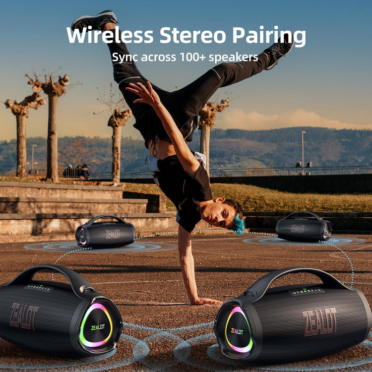 Experience powerful, high-quality audio with the ZEALOT S98 wireless speaker. Featuring four drivers and 160W RMS (200W peak) output, this speaker delivers deep bass and crisp treble for an immersive listening experience. With advanced DSP technology and a Bluetooth 5.3 chip, enjoy studio-quality sound with thunderous bass, perfect for any setting.