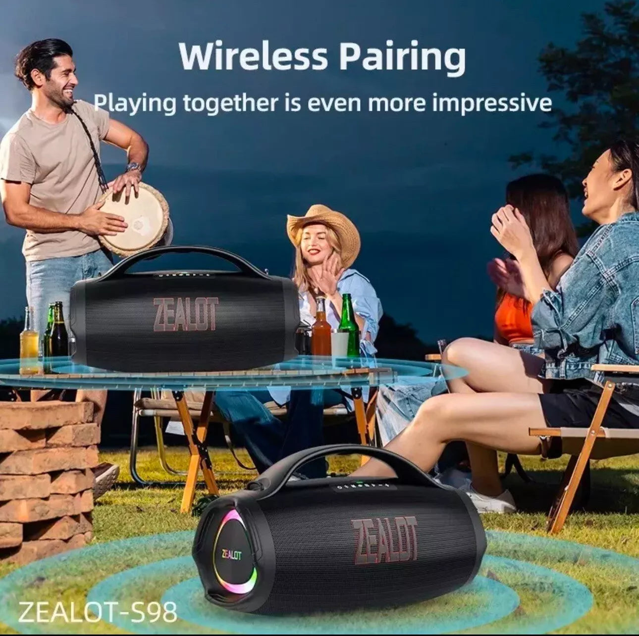 Take your party to the next level! Pair two or more S98 speakers for an even more powerful, bass-heavy sound. Enjoy 360Β° stereo audio, perfect for house parties, gatherings, and dance sessions.